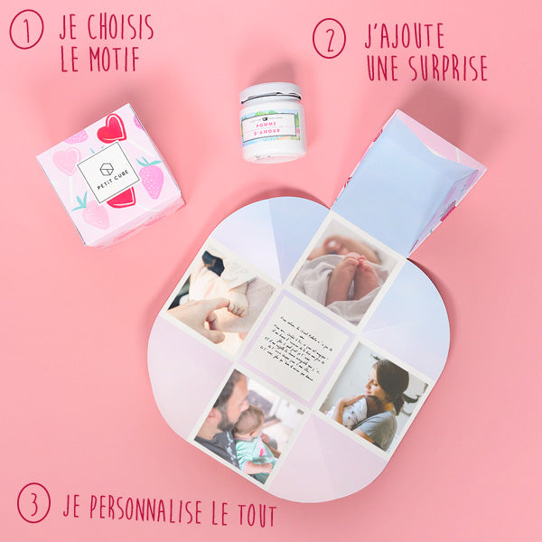 Une nounou, c’est presque comme une deuxième Maman… Elle prend soin de votre bébé chaque jour, veille à son épanouissement, le câline, le dorlote… Que ce soit pour Noël, son anniversaire, la fin de l’année scolaire ou toutes autres occasions, vous souhaitez lui dire MERCI. Avec Petit Cube, créez votre coffret cadeau 100% personnalisé ! Une box sur-mesure à composer en 3 étapes simplissimes !