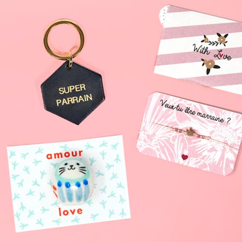 L’équipe Petit Cube s’est mobilisée pour dénicher des perles, des petits trésors, qui sauront garnir votre cadeau parrain marraine. Une sélection de jolis objets symboliques, articles originaux, petits cadeaux made in France, pour illustrer à quel point cette demande est importante pour vous et votre enfant. Si vous êtes en manque d'inspiration, vous pouvez filtrer les surprises par thème et vous trouverez la petite attention parfaite. Nous avons un coup de cœur pour les porte-clés en cuir "Super Marraine" ou "Super Parrain" de chez Fauvette ainsi que les bracelets de demande marraine.