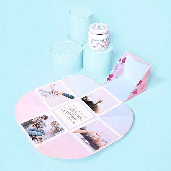 Vous avez un cadeau immatériel à offrir, par exemple, une nuit dans un bel hôtel, une activité à sensation ou encore un dîner gastronomique. Toutefois vous aimeriez remettre au destinataire un petit présent concret. Avec un Petit Cube, vous avez 4 emplacements photos et un emplacement texte. Vous allez pouvoir lui décrire et même lui montrer ce qui l'attend ! Vous indiquez son prénom et rédigez votre message : "bon pour...". À vous de jouer ! À l'intérieur, vous pouvez choisir l'un de nos produits comme la poignée de caramels (le produit le moins cher parmi toutes nos surprises, parfait si vous avez un petit budget).