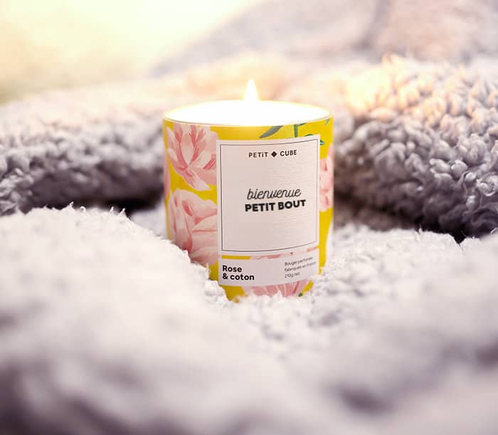 Une bougie personnalisée : n’est-ce pas le cadeau le plus approprié si vous cherchez un cadeau d'annonce de grossesse chaleureux ? Avec Petit Cube, vous créez votre bougie 100% personnalisée. En quelques clics, vous choisissez votre parfum, vous sélectionnez votre motif et vous agrémentez le tout d’un texte et d’une photo, pourquoi pas de l'échographie. Si vous souhaitez jouer la carte de l'annonce de grossesse avec humour à votre compagnon, c'est aussi le support idéal : "Prêt à dormir moins ?", "Baby is coming...", "J'ai envie de fraises". À vous de jouer !