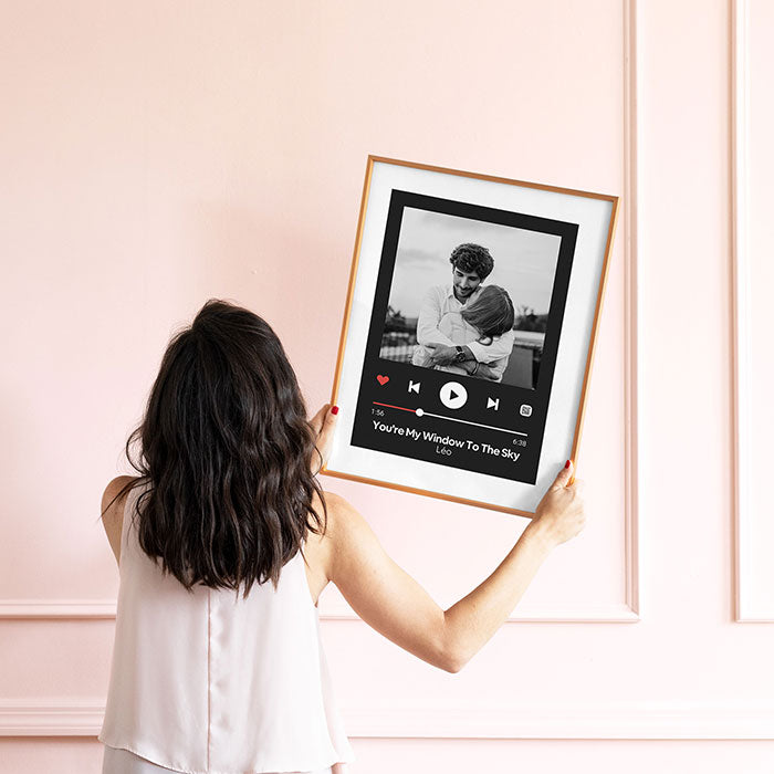 Vous pouvez ajouter un petit mot qui sera imprimé au dos de votre affiche ainsi qu'un porte-affiche pour sublimer votre création.
